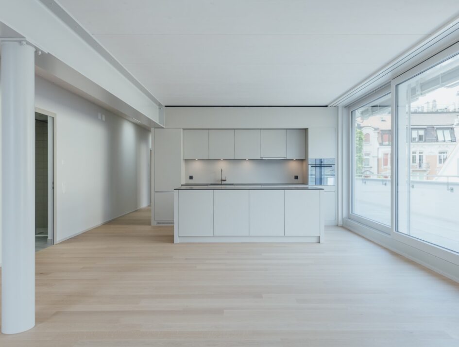Helle Wohnungen und grosszügige Büros: Diese historische Liegenschaft besticht mit Offenheit und Eleganz.
