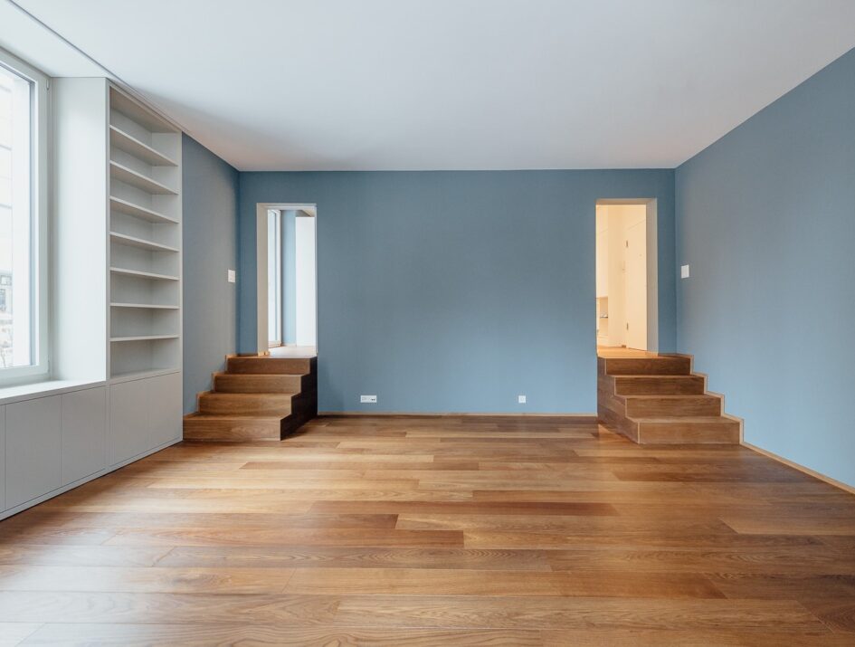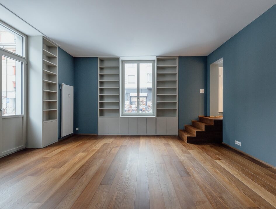Mit Garten im Eckhaus: Zwischen Oktober 2020 und Februar 2021 wurde eine Ladenfläche komplett saniert und in eine grosszügige 2.5-Zimmerwohnung umgewandelt.