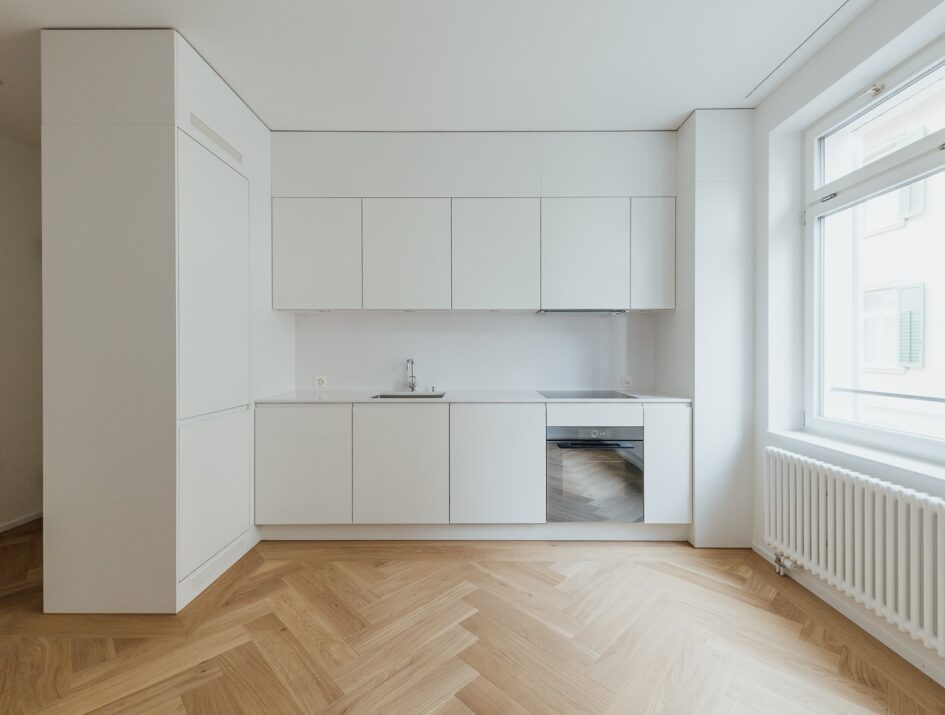 Der hochwertige und zeitlose Innenausbau mit grosszügigem Entrée und erstklassiger Ausstattung in Küche und Bad bietet den lichtdurchfluteten Wohnungen höchsten Komfort, geprägt von moderner Eleganz.