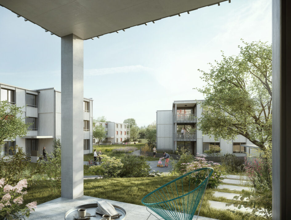 A total of 27 condominiums are being built in the three houses Boskoop, Golden, and Topaz. The Maigold residential development on the northern edge of the village of Mönchaltorf is a place where old and new come together. An ensemble that begins with an old farmhouse and a replacement building for the former barn and then flows smoothly into four additional new buildings.