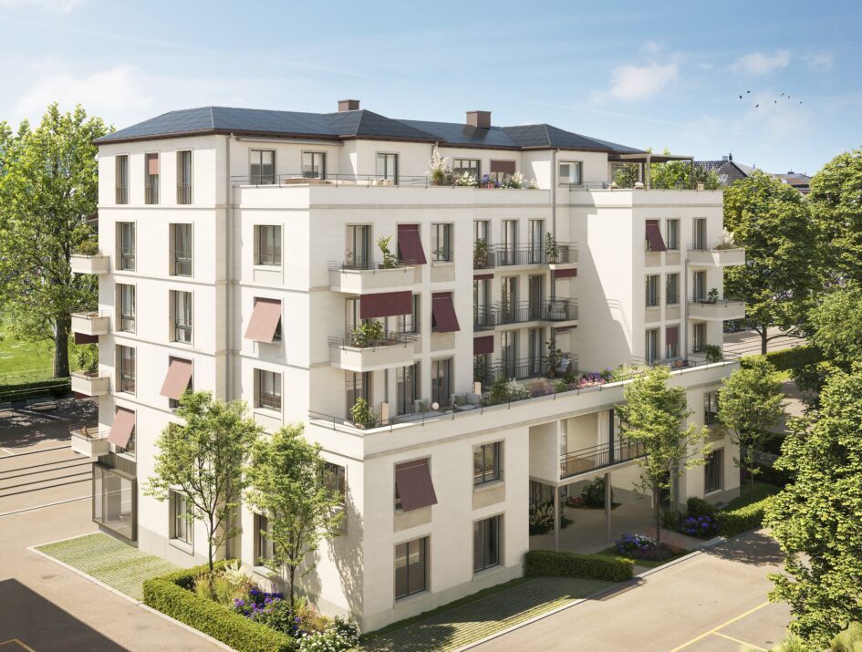 The apartments will benefit from an environmentally friendly connection to the Seefeld lake water network. A photovoltaic system will also be installed on the pitched roof as an in-roof solution – sustainable and modern.